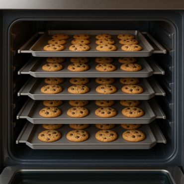 You can use multiple, up to 5 RackPans, in a standard oven, turning it into a high capacity oven, perfect for Sunday school cookies or large gatherings.